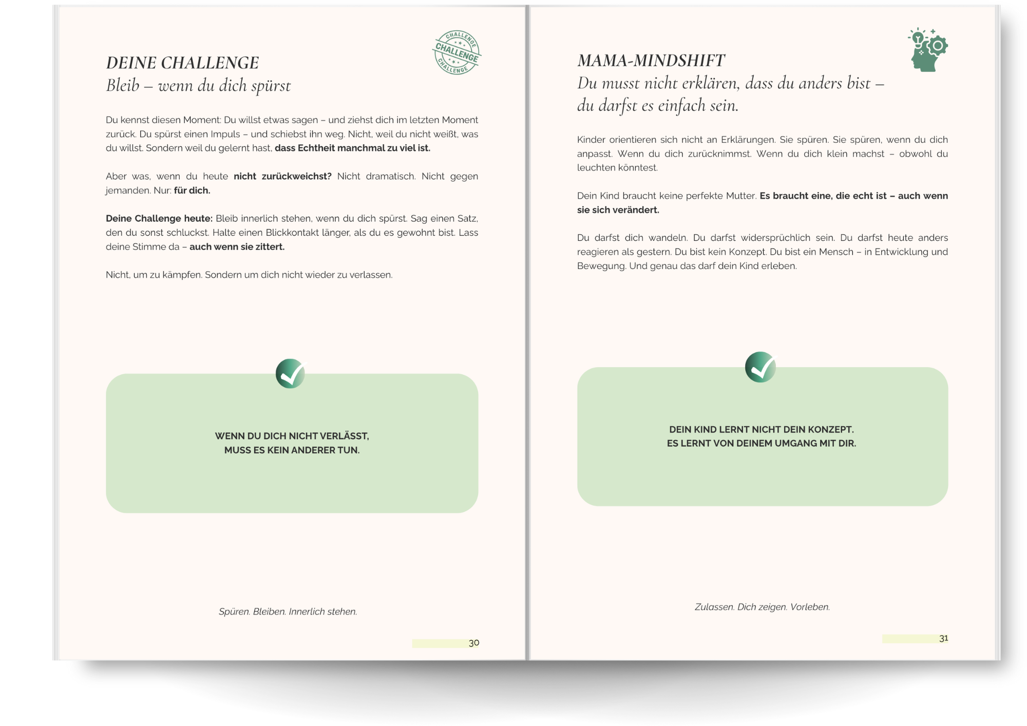 Es ist ein Prozessbegleiter, die tiefenpsychologische Erweiterung des Book – gedacht für Mütter, die nicht nur lesen, sondern sich selbst tiefer begegnen wollen.